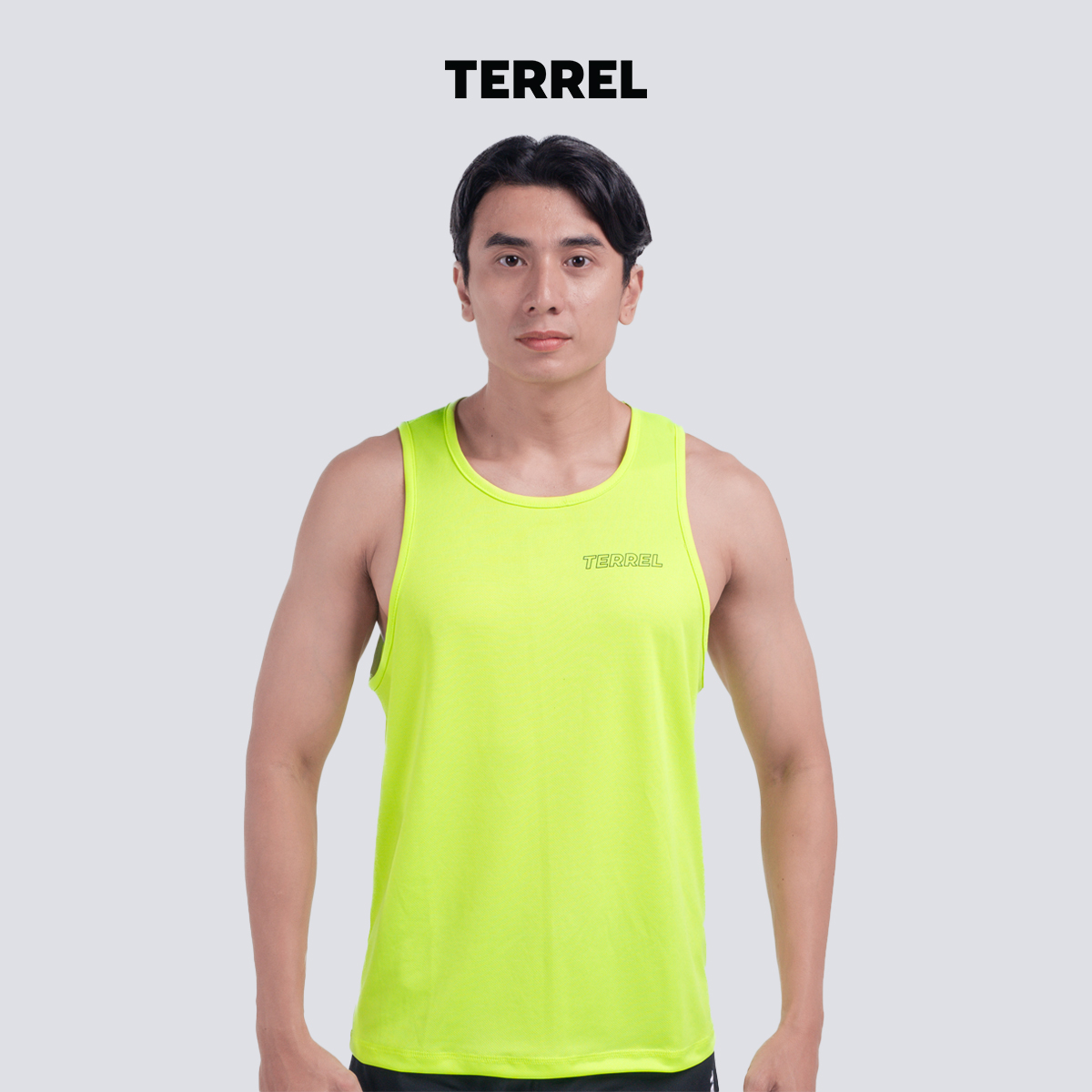 Terrel sportswear basic tanktop green volt sleeveless singlet pria dry fit gym running pria
