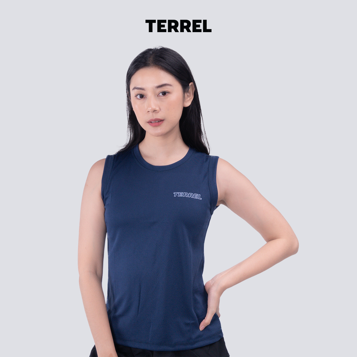 Terrel sportswear basic tanktop navy women dry fit running gym yoga kaos olahraga wanita
